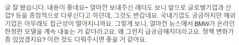 테슬라가 깔아놓은 '온라인 판매 멍석'에 BMW는 한정판을 내세워 달콤한 춤을 추고 있는 상황인거죠. 지금까지의 결과만 본다면, 성공적이라고 평가할 수 있을 것 같아요. BMW의 이 춤은 상당 기간 '다양한 변주'를 선보이며 계속될 것 같네요.